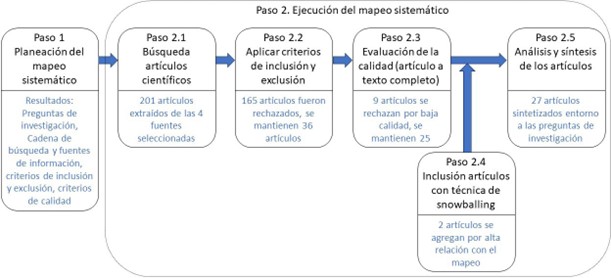 La Figura 1 resume el flujo de proceso realizado para la obtención del mapeo sistemático.