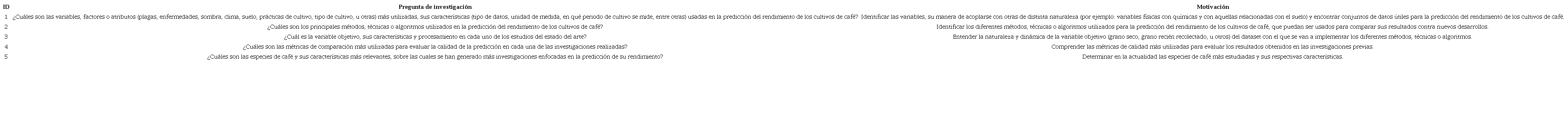 Las preguntas de investigación que direccionaron este estudio y su motivación se presentan en la Tabla 1.