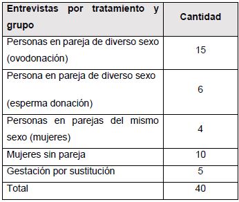 En la investigación marco, las dimensiones indagadas en las tres guías de pautas incluyeron algunas comunes y otras que se adaptaron a las características específicas del tratamiento realizado y el tipo proyecto parental: datos sociodemográficos, orientación sexual, estado civil, conformación de la familia y religión. Características del tratamiento. Descripción de la experiencia de donación de gametos, miedos y prejuicios. En el caso de las personas que realizaron una gestación por sustitución, se consultó acerca de las particularidades o escollos sociales, económicos y legales. Se tomó en cuenta la opinión en torno a la figura del embrión, posibles destinos y previsiones en caso de separación o muerte de los integrantes de las parejas, así como posibles dilemas éticos y morales.