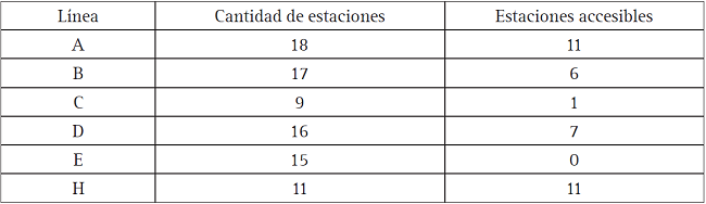 A continuación, en el cuadro 2, presentamos la información brindada por la empresa Subterráneos de Buenos Aires S.E., donde se responde al pedido de información sobre la accesibilidad de las distintas estaciones que administra la empresa de subterráneos.