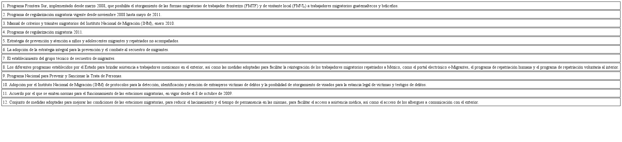 Por lo anterior, es necesario destacar doce programas implementados por el Estado mexicano para la protección de los derechos de los migrantes y sus familiares (véase la tabla 1).