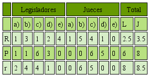 Si bien esta actividad se ha realizado por tres años consecutivos con los alumnos de licenciatura de tercer semestre de la División de Estudios Jurídicos, los cambios en los resultados no han sido significativos. En todos los casos, se ha confirmado la hipótesis de que la valoración del grupo de los juzgadores tiende a ser más severa que la del grupo de los legisladores. A efecto de ejemplificar dichos resultados, a continuación se reproducen aquellos que se obtuvieron mediante la aplicación de esta actividad en el mes de noviembre de 2017.