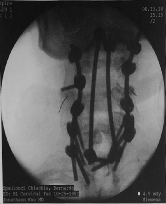 Senti o baque e, com tristeza, percebi que minha perna esquerda não estava se movendo, e isso me deixou perplexo. Frustrado e assustado, procurei socorro, e, após uma semana de ligações, encontrei o Dr. Q, e sua sugestão foi, antes do aperto de mão, que a única forma de sair dessa situação seria uma intervenção cirúrgica. De acordo com os prontuários emitidos em 14 de setembro de 2017, após a obtenção tanto de uma radiografia, de EOS, quanto de tomografia e ressonância magnética, eu apresentava espondiloloptose de C6 com uma quantidade significativa de displasia de ambos C6 com anterolistese até o toque Anterioridade de C7 e T1, com um C7 displásico e uma parte displásica de T1. Era a medula espinhal colidindo significativamente sobre a parte póstero-superior de C7, onde apresenta-se estenose medular significativa neste segmento, tornando-me mielopático.