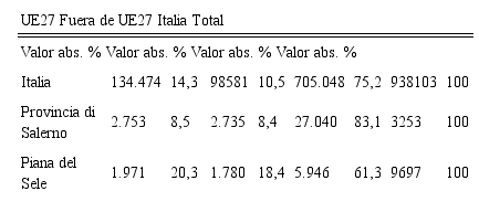 Istat.Las estrategias de expansión comerciales de las empresas agrícolas de la Piana del Sele en los mercados italianos y europeos han determinado la creciente estanda- rización de los productos y procesos productivos, así como la internacionalización de la agricultura local. La orientación hacia los mercados extranjeros se ha hecho de manera subalterna, a través de empresas agrícolas que no son productoras directas, sino empresas de envasado y comercialización. La actividad de producción se ha sub- ordinado a las de transformación y, sobre todo, a las de distribución y venta, defi- niendo la Piana del Sele como una agricultura orientada a la exportación, donde el momento productivo está subordinado al momento de la distribución y de la comer- cialización. En síntesis, este territorio se puede definir como uno de las enclaves de producción agrícola para la exportación más importante del Sur de Italia, que se ha convertido en un área especializada en diferentes tipos de cultivos, especialmente en las hortalizas frescas, utilizadas sobre todo para la cuarta gama.