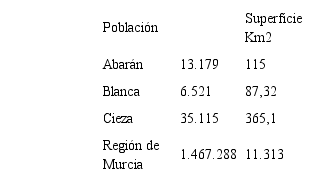 En el sureste de España se sitúa la Región de Murcia que es, desde hace décadas, un enclave agrícola especialmente atractivo para comprender la organización del tra- bajo en el marco del capitalismo flexible de la agricultura globalizada del Sur de Europa. La Vega Alta del Segura es una extensa área agroindustrial especializada en la producción y exportación internacional de frutas en fresco. Los municipios que con- forman la centralidad del enclave son Abarán, Blanca y Cieza, con una extensión total de 567,42 km2 y una población de 55.000 habitantes (tabla 6).