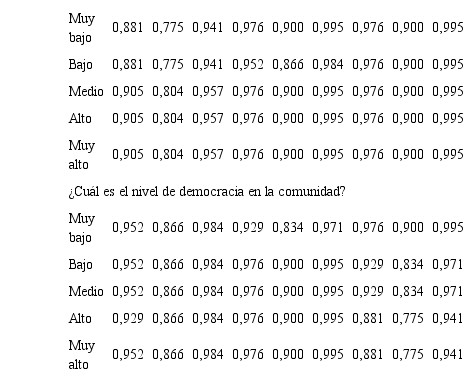Mediante estos resultados se efectuó una clarificación de las instrucciones y adecuación de algunos términos para la población objetivo, aspectos relevantes que pueden afectar las propiedades psicométricas de un instrumento (Haynes et al., 1995; Meliá, 2001; Koller et al., 2017). El resultado de esta fase de aplicación al grupo piloto obtuvo una buena evaluación en su grado de comprensión y aceptación, satisfacción con el instrumento y tiempo para contestarlo. Respecto al análisis de confiabilidad, si bien presentó un valor óptimo (Nunnaly y Berstein, 1994; Oviedo y Campo- Arias, 2005; Juárez-Hernández, 2018), es importante precisar que el coeficiente tiene a mostrar inestabilidad en muestras pequeñas (Charter, 2003). Por lo anterior, se efectuó la ejemplificación del cálculo de los intervalos de confianza al 95 por ciento del valor obtenido bajo la propuesta de Koning y Frances (2003), presentando una variación modesta (ICI: 0,747; ICS: 0,955), destacando que el valor obtenido para el intervalo inferior se suscribe dentro del rango permisible (Nunnaly y Berstein, 1994). Lo anterior se correspondió con la aplicación a la muestra poblacional, en cual se obtuvo un valor óptimo, así como para el intervalo de confianza inferior (alfa de Cronbach: 0,989; IC 95%: 0,851 + 0,930). Bajo este argumento se señala que la aplicación del instrumento produce resultados consistentes y coherentes (Oviedo y Campo-Arias, 2005; Soriano, 2014; Villavicencio-Caparo et al., 2016), y se verifica la correlación entre ítems y representación del concepto abordado (Welch y Comer, 1998; Tavakol y Dennick, 2011). Este hecho se correspondió con la percepción de la muestra que ya más del 57 por ciento indicó que el instrumento consideraba todos los aspectos de su comunidad.