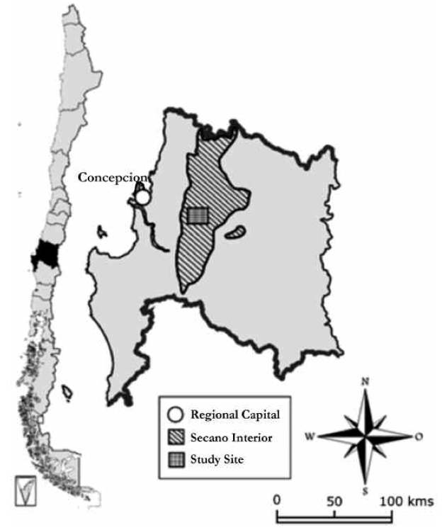 Study site located within the Secano Interior and the Biobio administrative region of Chile