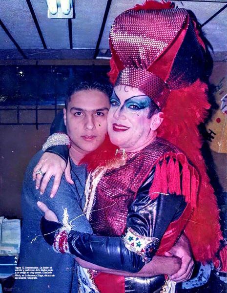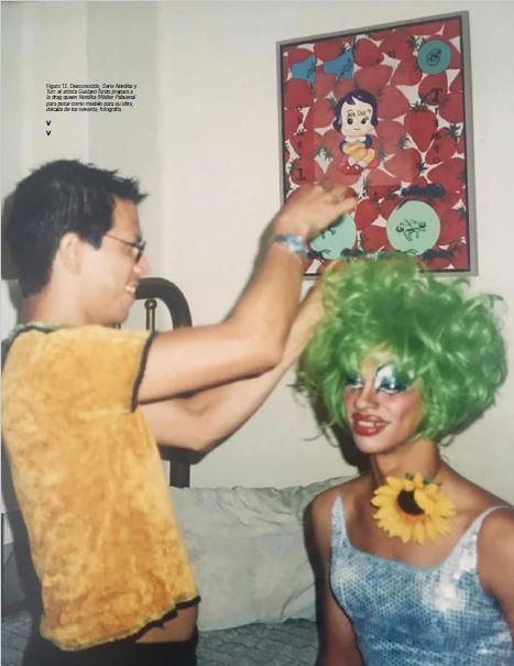 Sánchez Baute, las prácticas travestis, transformistas y drag queens asociadas al Carnaval de Barranquilla, aunque a diferencia de este ha mantenido el interés en aportar y divulgar las historias de un travestismo y transformismo más artesanal y complejo. Las fotografías corresponden a su archivo personal (figuras 15-16), una muy probablemente a principios de la década de los noventa, en la mítica discoteca Stage, con un amigo transformista, establecimiento que estuvo activo esos años y promovió las prácticas transformistas y drag queens, incluso fue un referente, pues la frecuentaba el artista Gustavo Turizo, y pudo ser una interesante influencia, pues aquí encontró actuando a muchas de sus musas, como a la Nordika y a la John Pantoja. Better aparece en la otra fotografía titulada Better InDrag, como el mismo le ha dado nombre, es una serie de fotografías que le tomó Leonardo Tapia, para el spot de la serie documental Crónicas traslocadas, en 2015. Aparece, como en otras imágenes, un Better transgresor, que acude a símiles de las prácticas travestis, transformistas y drag queens, queriendo mantener un vínculo con la escena T. Ahora la voz de Better, a quien acompañé en el lanzamiento de su libro en 2009 (figura 17), que en sus palabras configura las múltiples voces que en su obra hablan, celebran y hacen memoria: