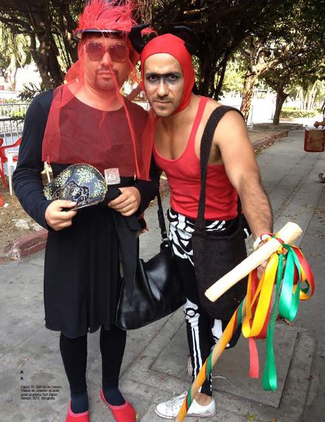La experiencia de la práctica transformista está ligada con la cultura popular en Barranquilla. El hecho de que esporádicamente en la primera década del siglo XXI volviera a querer transformarme conectó en 2010 cuando nuevamente mi amigo Jaime apareció para proponerme junto a mi amigo Javier Mojica, recién llegado a trabajar en la Facultad de Bellas Artes de la Universidad del Atlántico, que saliéramos en la comparsa “Disfrázate como quieras”, pensando en que la única forma de comprender la compleja profundidad de la experiencia carnavalera era participando activamente de ella y no como espectador. Así fue como salimos disfrazados aquel sábado de carnaval: Jaime como pingüino, Javier como egipcio y yo como diablito. La experiencia sería para mí la tercera vez que me permitiría practicar el transformismo: en 2004, ya había salido en el carnaval gay junto con el grupo Rostros de Fortaleza, disfrazado de marimonda, y en 2005 me había transformado en Fresita,1 para participar en un reinado travesti en la noche de Halloween, en el municipio de Coveñas. Ambas experiencias estuvieron marcadas por la discriminación y el odio en razón de la orientación sexual.