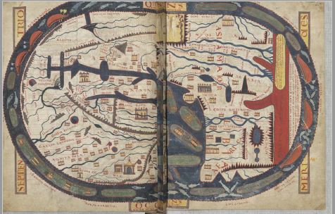 Una de las erudiciones constantes antes del siglo XV era la forma de lo desconocido, de ahí que surgieran distintas ideas de cuán amplia podía ser la ecúmene o tierra habitada. Entre otras, la hipótesis más aceptada de la época era la de una superficie conformada por un tripartito bloque de tierra, sólido, rodeado de un único océano y con un vacío repleto de monstruos y criaturas mitológicas (figura 1). Esta visión del mundo resulta de una conjunción de teorías propuestas por Tolomeo, san Isidoro de Sevilla y las Sagradas Escrituras. Las tres partes que conformarían la tierra serían Europa, Asia y África, con un alfa y un omega que harían a Colón, con distinguida soberbia, enviar a testigos, para observar si sus tripulantes “tenían alguna duda de que esta tierra (La Española) no fuese la tierra firme al comienzo de las Indias y fin a quien en estas partes quisiere venir de España por tierra” (Fernández de Navarrete 1859).