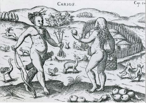 El francés Jean de Léry estuvo en Brasil entre 1556 y 1558. Como ya era tradicional para la época, reunió sus memorias de viaje en un texto que tituló Histoire d’un voyage fait en la terre du Brésil, autrement dit Amérique en que afirmó: