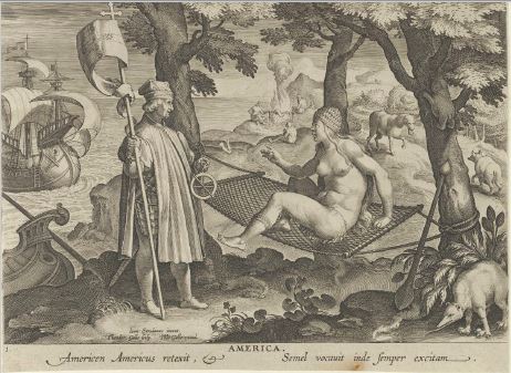 Una vez realizado este giro en la visión del indígena, este se puede emplear como cualquier otro de los bienes del paraíso. El paisaje, junto con sus habitantes, se asume abundante y dispuesto (atrevidamente representado en la ilustración que de América hace Theodor de Galle con un cuerpo femenino, dispuesto, atento y servil [figura 14]). Es justamente por estas condiciones que el europeo asume la potestad de explotar al indígena (al negro y al asiático) sin visiones mesuradas de largo aliento. Frente a lo anterior, Rosa Oviedo (1944) nos recuerda:
