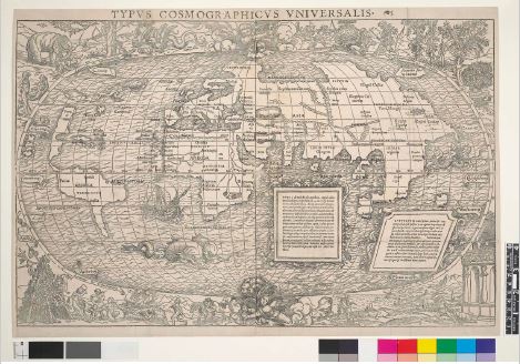 Dado este determinismo teológico de la geografía europea en el siglo XV, las tierras no conocidas por estos (anecúmene) eran representadas con vacíos aterradores (horror vacui) y leyendas de monstruos marinos. Tal vez el ejemplo más famoso de este vacío sean las puertas cerradas del jardín de las delicias (figura 3) que representan el edén dentro del globo terráqueo y mantienen la inscripción del Salmo 33: “Él lo dijo, y todo fue hecho. Él lo mandó y todo fue creado”. El borde de dicho jardín se encuentra vacío manteniendo la hipótesis de que el paraíso se encuentra justo después de lo desconocido. Frente a las inscripciones mitológicas, podemos resaltar el Typus cosmographicus universalis, realizado en 1532 por Sebastian Muster y Hans Holbein (figura 4), que rodea el globo terráqueo de mitificaciones teológicas y monstruosidades propias de la mitología judeocristiana.