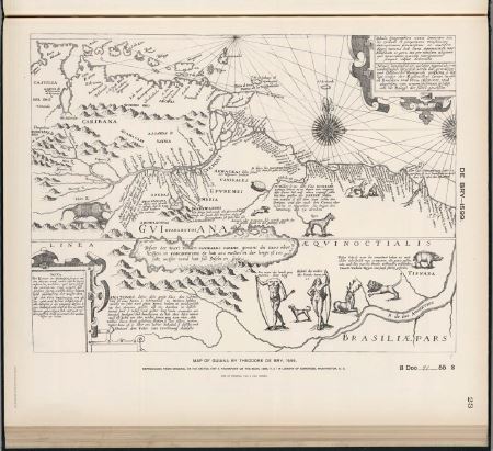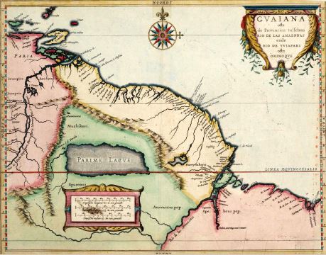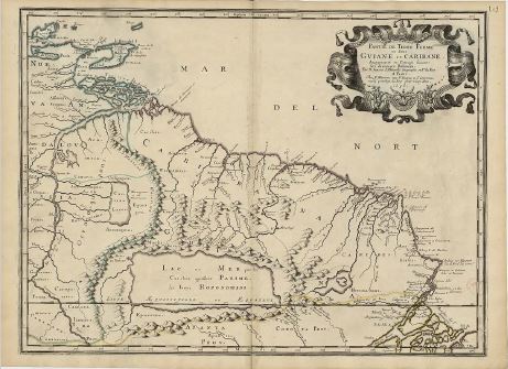 Tiempo después se realizaron cartografías de espacios con características paradisiacas como el Dorado y el lago Parima (figuras 5-6-7), que, aunque mantienen la esperanza ubicando el mito geográficamente, limitan su representación a un vacío dentro del mapa. Por la existencia de estas cartografías, podemos reafirmar que uno de los sentidos que encontraban las expediciones de la época se da en la tensión utópica visibilizada en la ubicación cartográfica de una tierra que está pero no es. Ser como promesa, según los mapas citados, será una de las primeras condiciones que se le adjudican al territorio americano y que, como lo desarrollaremos, se decantará en la representación identitaria de sus habitantes.
