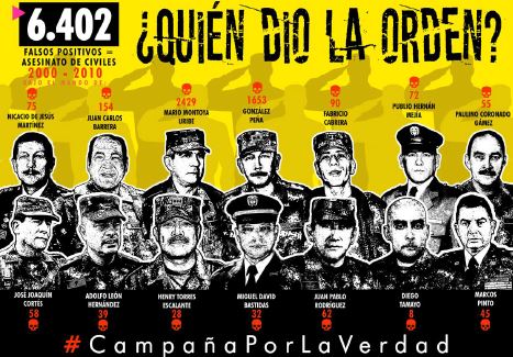 La verdad histórica de 6402 jóvenes engañados con falsas promesas de trabajo, secuestrados en sus casas y veredas, o asesinados después de ser detenidos, que nunca volvieron, está documentada en miles y miles de folios de expedientes judiciales, informes de organizaciones de derechos humanos y veredictos judiciales que la mayoría de la sociedad colombiana no conoce. Por eso, quiso saltar a la calle encabezada por una pregunta que hoy es común y que sigue sin respuesta por parte de la justicia: “¿Quién dio la orden?”. Debajo de la pregunta emergen los rostros de los presuntos responsables: comandantes de unidades militares donde esta práctica se volvió habitual, estimulada, premiada e, incluso, obligatoria.