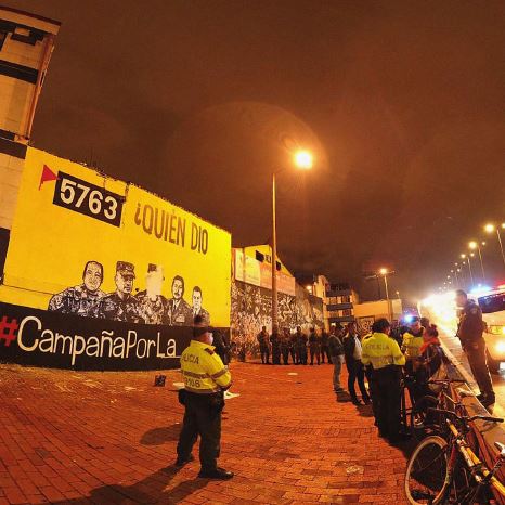 Debido a que los artistas, amparados en la ley, no accedieron a los requerimientos, los militares llamaron a la Policía que les retuvo los documentos, los fotografíó y les impuso comparendos. Simultáneamente, llegaron dos camiones militares con soldados y materiales, que acordonaron la zona y borraron el mural con pintura blanca.