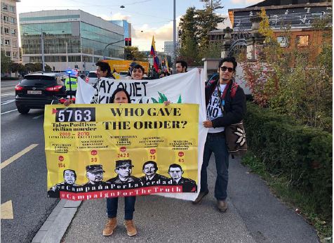Por esta razón, las víctimas, los artistas y las organizaciones defensoras de derechos humanos parte de la #CampañaPorLaVerdad acudimos al escrache, o manifestación popular de protesta contra una persona, funcionario público o agente estatal, vinculado con algún tipo de delito, pero a quien la justicia no ha alcanzado. También han usado este recurso las organizaciones feministas ante una justicia patriarcal que rara vez condena las violencias machistas. El escrache tuvo su origen en las dictaduras del Cono Sur, donde las víctimas, hartas de impunidad, iban hasta las casas o vecindarios de militares torturadores para ponerlos en evidencia.