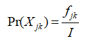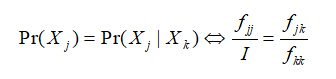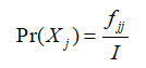 La probabilidad marginal de Xj, denotada como Pr(Xj), puede obtenerse a partir del cociente entre las frecuencias de cada suceso (fjj) y el número total de escenarios donde podía haber aparecido (I).