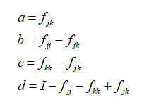 Para el cálculo de estas medidas puede partirse de cada casilla (fjk) de la matriz de coincidencias con el siguiente sistema de equivalencias: