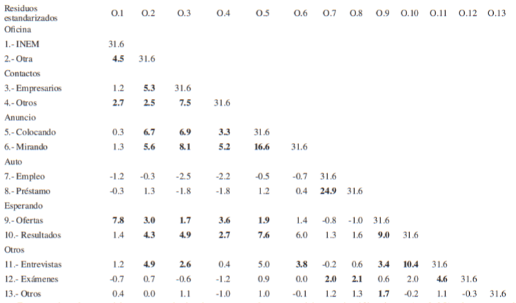 Por esta razón,los residuos puedennormalizarse, empleando la fórmula del residuo de Haberman (rjk):