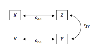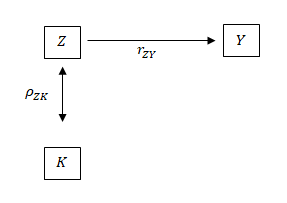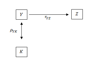 Las relaciones entre el nivel de agrupación (K) y la variable auxiliar (Z) y objetivo (Y) están representadas por la correlación intraclase , que se define como: