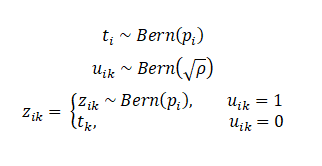 Las poblaciones fueron generadas utilizando el paquete fabricatr de R (Blair et al. 2018). Al conformar las poblaciones se han utilizado dos procesos, uno para generar los datos agregados y otro para generar las variables correlacionadas. En primer lugar, para crear la variable agregada se ha generado la variable auxiliar (Z) o estimada (Y) a partir del nivel de la correlación intraclase ρ. Para simplificar el siguiente desarrollo, se asume el escenario congZ, en el que el valor z de cada elemento i en cada conglomerado k viene definido por: