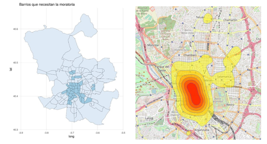 Esta propuesta de moratoria recoge una serie de diagnósticos colectivos sobre turistificación realizados durante el último año. Titulado “moratoria o barbarie”, busca señalar algunos de los efectos que está teniendo la turistificación en la ciudad de Madrid: 10.000 vecinos menos en Centro; 73.878 plazas turísticas en Centro, donde residen 149.718 habitantes (1 plaza turística por cada 2 habitantes); más del 39,9% y del 39.1% de subida de los precios de los alquileres en Vallecas y Centro; 4,3% de noches de alquiler en Airbnb bajo un modelo de economía colaborativa, y un 95,7% de alquiler en Airbnb de pisos turísticos que se alquilan de manera profesional.