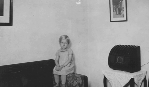 In Figure 3 we again find my mother, this time around the age of three, sitting in the one-room apartment where she then lived, beside the radio, and with two lithographs on the wall. Compared to three-year-old children of today, the media landscape of my mother (and her coevals) might seem ascetic. Of course she had access to books, newspapers and magazines, but there were no screen media available. At the time, radio was the new medium, but it was a medium that my mother was born into – it had always been there for her. For her parents, however, born as they were in the early 1900s, radio had been a novelty when it arrived in the mid-1920s. And so, every child is born into a prefigured structure that is the media landscape, that in combination with the general social and historical landscape is the location in which it is brought up. Over each person’s lifetime, however, we can be certain that there will appear new media, and that these media will have an impact on the life of the generation and help mould it into a specific generation, with its own experiences and sentiments. Each new media encounter will have impact, but with Mannheim we can see that the impact on experience is stronger during the formative years of youth, that is, roughly between the ages of 17 and 25.