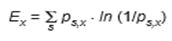 Donde E es el índice de entropía, s indica una determinada combinación de estatus, x a una cierta edad y Psx la proporción de la población x que se encuentra en el estatus s. El índice de entropía es el sumatorio de la proporción de una edad determinada que se encuentra en la combinación de estatus multiplicado por el logaritmo natural de la proporción inversa de esa combinación.