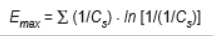 Donde Emax es la entropía máxima y Cs es el número total de combinaciones de estatus posibles. La entropía máxima para la combinación de cinco estatus es de 3,466 teniendo en cuenta que el número total de combinaciones posibles es de 32.