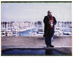 Georges [I126] se encuentra delante de un puerto deportivo con yates, a los que les da la espalda. Está de pie, con la misma posición vertical y digna que los mástiles de las embarcaciones, pero en el quicio de uno de los pantalanes, como -su pie adelantado así lo indica- si quisiera avanzar hacia el precipicio, hacia el agua, y entrar dentro de ella22. Lleva gafas de sol negras en un día frío y algo brumoso y una bufanda roja, de su equipo deportivo, que contrasta con su abrigo oscuro. Aunque no vemos sus ojos, su mirada, oscurecida por las gafas, es seria y, su cabeza, ligeramente inclinada hacia arriba, es ajena a lo que le rodea y, más bien, parece empujarle -como su bufanda- hacia el mar que tiene delante, hacia el abismo de su origen.