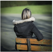 También Cristiane [I73] está sola, pero en una calle, sentada en la esquina de un banco descolorido en el que se apoya con un brazo y del que una pequeña parte del vestido o de ella misma se sale, como si, aunque no fuera perfecta su vida actual35, se sintiera estable y segura en ella36. Aunque todo parece calmado, una ligera brisa o un suave movimiento de su cuerpo rompe la regularidad del peinado. La fotografía la presenta, por otra parte, de espaldas a nosotros y de ahí que no veamos ni sus ojos ni su rostro y, por consiguiente, no es fácil adivinar qué siente o qué estará pensando. Cierto, no es fácil saberlo, pero como quiera que lo que tiene delante está diluido, esto expresa que sus recuerdos se desvanecen con el paso del tiempo y que -como indica su pelo, ligeramente irregular- una liviana nostalgia la zozobra.