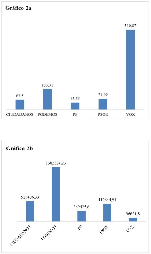 En primer lugar, dado que los partidos PSOE, Podemos, PP, Vox y Ciudadanos han sido los principales cinco partidos, este apartado se centrará sólo en ellos (ver tabla 1).
