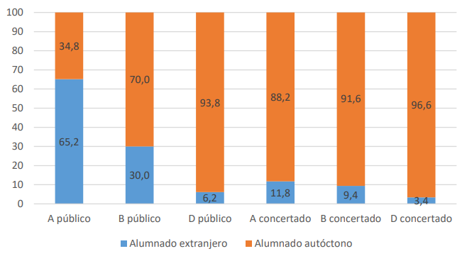 De esta manera, podemos afirmar que la concentración educativa en determinados segmentos del sistema educativo se produce no solo por dinámicas propias de clases sociales y/o residenciales, sino que la orientación que las familias de origen extranjero reciben desde las instituciones contribuye a que esta situación se agrave con todas las implicaciones que ello supone.