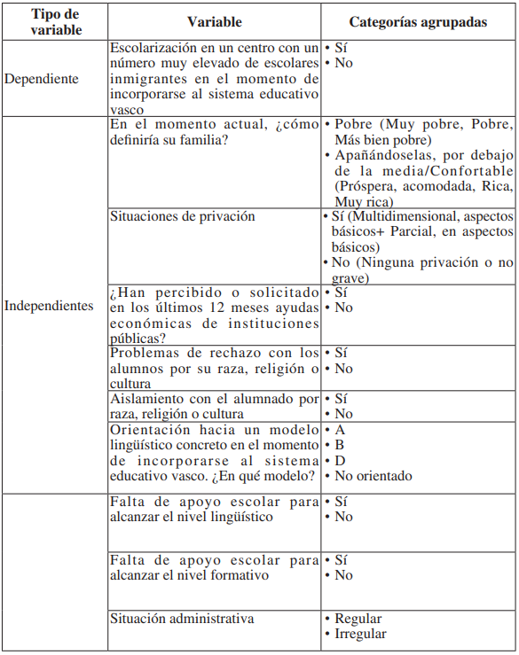 A este respecto, Castaño y Olmos (2012) señalan que al menos durante los primeros años de residencia, las personas inmigrantes se encuentran en condiciones de inferioridad respecto al resto de ciudadanos en aspectos como el trabajo, la vivienda, la cultura, y no sólo como individuos, también como grupo social. En el caso de la CAE, la inmigración extranjera es aún más reciente por lo que nuestra población objeto de estudio se encuentra en esa situación de desventaja que mencionan estos autores. Además, cabe señalar que las dinámicas de segregación están estrechamente ligadas a los mercados educativos locales, así como a las particularidades de las políticas educativas implementadas en cada país (Bonal y Bellei, 2018).