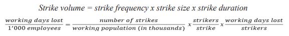 Since strike magnitude results from multiplying strike size and strike duration, the tendency towards smaller strike size combined with the indistinct pattern of strike duration also translates into a tendency towards smaller strike magnitude. The same decreasing tendency can also be observed for strike volumes—despite the addition of strike frequency as a further multiplication factor. The fact that strike volumes decrease with the crisis period indicates that the increase in strike frequency during that same period could not compensate for the decrease in strike size.