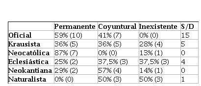 La división del trabajo intelectual hace que, en el frente anti-krausista, convivan dos tipos de filosofías: por un lado, el polo temporal de la red neocatólica, que produce una filosofía de carácter mundano, combativa y embarcada en un proyecto de hegemonía cultural; por otro, el polo académico e intelectual de la red eclesiástica, técnicamente sofisticada pero anquilosada en temas y objetos del canon tradicional que, sin embargo, aspira a recuperar parte del poder universitario perdido, debido a la secularización y a la reforma universitaria.