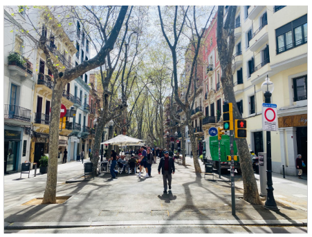 Pero, sin duda, el desarrollo inmobiliario del 22@ ha contribuido aún más a los efectos homogeneizadores del urbanismo emprendedor Barcelonés, ilustrando perfectamente un enfoque mundial al urbanismo que, según afirma Zukin (2020: 3), equivale a “nada menos que la urbanización de Silicon Valley” (Figura 2). Por ejemplo, puede que los arquitectos alaben prosaicamente la forma específica e innovadora en la que “este o aquel nuevo edificio” cumple con los objetivos de sostenibilidad mediante el reciclaje de energía o agua. Pero, esto no atenúa los efectos homogeneizadores de la reproducción en serie en el 22@, tan característico de los proyectos emprendedores urbanos como son los distritos de innovación. El distrito 22@ es realmente un palimpsesto de la vieja y la nueva Barcelona. Solo a un par de minutos caminando de la Rambla del Poblenou (Figura 3) nos podemos perder en un espacio completamente vacuo en medio de torres recientemente construidas, edificios de oficinas con fachada de vidrio que albergan empresas multinacionales recién llegadas y coworkings repletos de trabajadores de diferentes países. Estos “no-lugares”, tomando prestado de Augé (2017), complementan los no-espacios de consumo y espectáculo ya construidos al final de la Diagonal, en la controvertida fase de emprendimiento urbano, llevados a cabo bajo la excusa del Fórum de les Culturas 2004 (incluyendo el centro comercial Diagonal Mar). Mientras tanto, el corazón del “viejo” Poblenou está siendo invadido por la gentrificación y la turistificación (Mansilla y Milano, 2018) con un número creciente de hamburgueserías veganas, microcervecerías de cerveza artesanales, hoteles y alquileres de Airbnb que se mezclan con bares, tiendas, viviendas y escuelas primarias tradicionales.