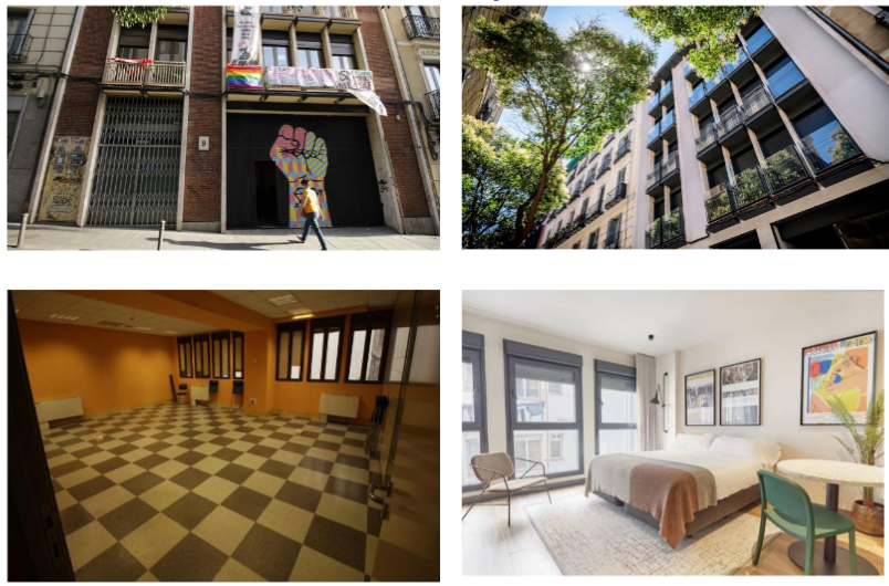 A día de hoy el edificio ya no es propiedad del holding de los Capriles. El edificio se ha utilizado como un activo financiarizado entre las distintas empresas del grupo. Según las cuentas depositadas en el registro mercantil en 2018 la sociedad arrojó un importe neto de la cifra de negocio de 32 millones2, fecha en la que hubo una primera transacción. Desde julio de 2021 es propiedad de una nueva forma jurídica, Fida SL3. Se estima que, sobre el actual precio medio de venta en la zona, la revalorización global del inmueble alcanza cerca de siete veces su valor de venta de 20144. Esta diferencia supone la captura de una brecha de renta (rent gap, Smith 1979) impensable en un espacio como Malasaña, ya altamente saturado de precios antes de 2014 (Roch y Fernández, 2012) que se hace posible y se lleva a cabo en el marco de políticas neoliberales de ajuste de deuda pública mediante la desamortización de patrimonio público. Mientras tanto, los Capriles siguen invirtiendo en Madrid, al ultima de sus adquisiciones publicitada ha sido la compra de un nuevo edificio, este de uso industrial, para su conversión de nuevo en apartamentos turísticos, en Tetuán, el ”barrio de moda” y “el distrito más barato dentro de la M-30” (Sanz ,2022)