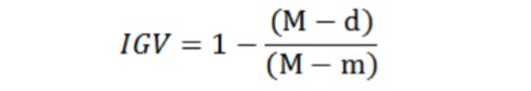 Donde: IGV: Índice del Grupo de Variables estandarizado del bien patrimonial a evaluar; d: dato original a ser estandarizado; M: mayor valor del indicador; m: menor valor del indicador.
