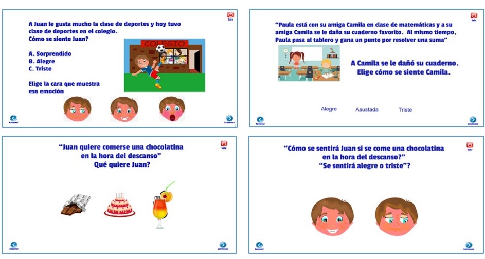 Por otra parte, el programa cuenta con un diseño que se adapta a las características de la población colombiana en el manejo del lenguaje, el uso de imágenes, el planteamiento de las situaciones y los elementos contextuales implicados en las actividades. La validación de un instrumento de intervención acorde a las características del contexto colombiano reduce la probabilidad de sesgos culturales y raciales (Covacevich, 2014). Lo anterior respalda la pertinencia de este tipo de investigaciones en nuestro país, donde aún son escasos los estudios que reportan herramientas tecnológicas validadas para la intervención socio-emocional en autismo.