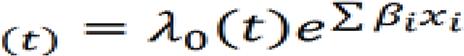 em que λ0(t) é a taxa de abandono observada na população e calculada pelo estimador de Kaplan Meyer (COLOSIMO, 1982); e, xi é a i-éssima covariada considerada no modelo.