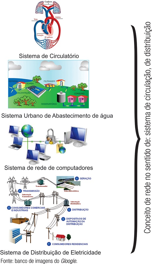 A associação entre rede e as demais áreas, distintas aos olhos da atualidade, teve grande avanço com as pesquisas a respeito da anatomia do corpo humano, em especial sobre a função do coração no sistema circulatório. No século XVII, descobriu-se que o sistema circulatório funcionava como uma rede de fluxos sanguíneos bombeados pelo coração, que colocava em movimento (circulação) o sangue do corpo. Da explicação do corpo humano para o corpo social, foi uma questão de tempo e de associação de ideias. Segundo Parrochia: