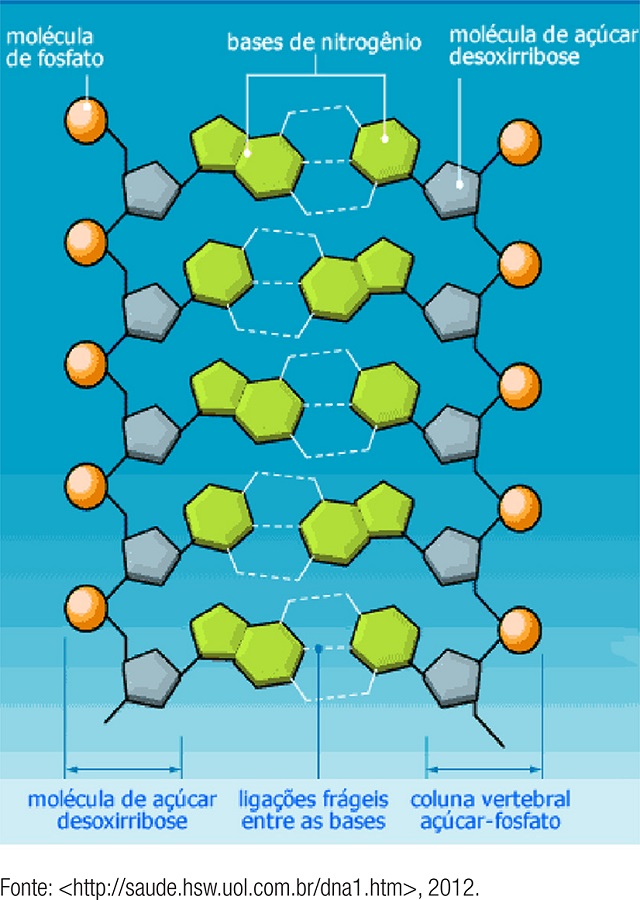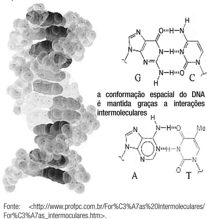 Também encontramos outra referência interessante associada ao funcionamento dos organismos vivos. Sabemos que todas as proteínas que compõem o nosso organismo são constituídas por sequências de aminoácidos ligados covalentemente. Esses compostos possuem grupos -OH e –NH, capazes de formar uma forte rede de ligações intermoleculares. É isso que confere a estrutura terciária das proteínas, isto é, a sua forma característica de orientação espacial. Essa configuração pode ser visualizada também na representação do DNA de todos os humanos: sua forma de dupla-hélice, a qual é mantida graças às ligações de hidrogênio entre os grupos dos -OH e -NH das bases nitrogenadas heterocíclicas que o compõem o GCAT. As imagens 5 e 6 nos mostram a representação gráfica desses compostos.