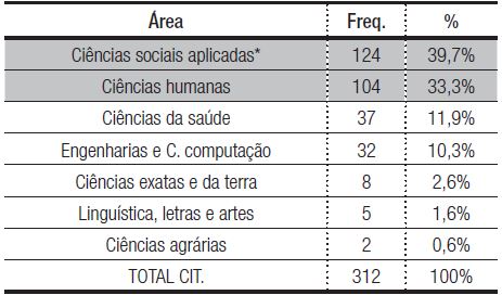 Em termos de vinculação à área do conhecimento, na tabela 3, apresentamos os resultados da distribuição.