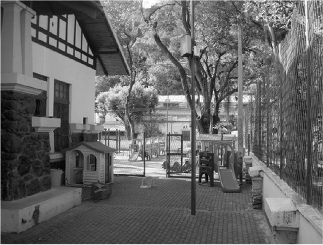 As escolas mais antigas parecem oferecer pátios melhores e mais interessantes às crianças do que as escolas construídas/instaladas recentemente, o que é curioso, na medida em que essas escolas foram construídas no início do século XX, época em que a concepção de educação para as crianças pequenas era bem diferente da que se defende hoje. Num Brasil ainda sem unidade educacional instituída, não havia documentos ou orientações que expressassem preocupação pedagógica com a qualidade dos espaços para as crianças pequenas. Ainda assim, as duas escolas mais antigas da coleção têm características que, pelos padrões de hoje, são consideradas fundamentais à educação infantil, tais como: a amplitude dos pátios; a presença de elementos como brinquedos fixos e bancos feitos em diversos materiais naturais e não-naturais; além da organização do pátio que convida ao encontro e à interação da crianças com o espaço e entre elas.