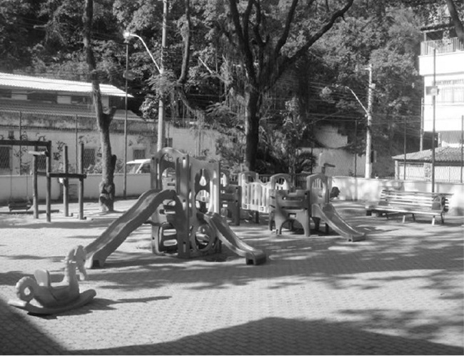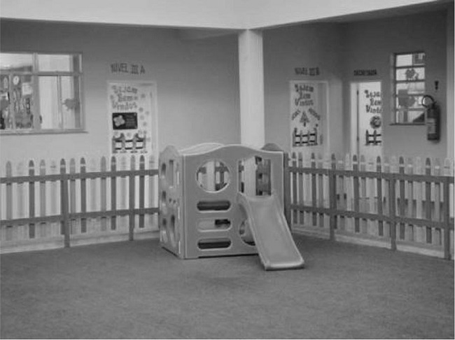 No cenário do estado do Rio de Janeiro, a região metropolitana e a capital exercem um papel relevante, concentrando 69% da população, além de 65% das matrículas de creche e 63,9% das de pré-escola (NUNES; CORSINO; KRAMER, 2011, p. 22). Dada essa situação, a pesquisa optou por um recorte metodológico: trabalhar com fotografias de pátios de escolas públicas de educação infantil, que atendam creche e/ou pré-escola, da capital e de municípios da região metropolitana do estado do Rio de Janeiro,2 totalizando oito municípios e nove escolas. Os municípios escolhidos foram Rio de Janeiro, São João de Meriti, Itaguaí, Guapimirim, Duque de Caxias, São Gonçalo, Belford Roxo e Niterói. Um dos municípios participou da pesquisa com duas instituições, que caracterizam dois tipos de escolas dessa rede, uma antiga e uma recente.
