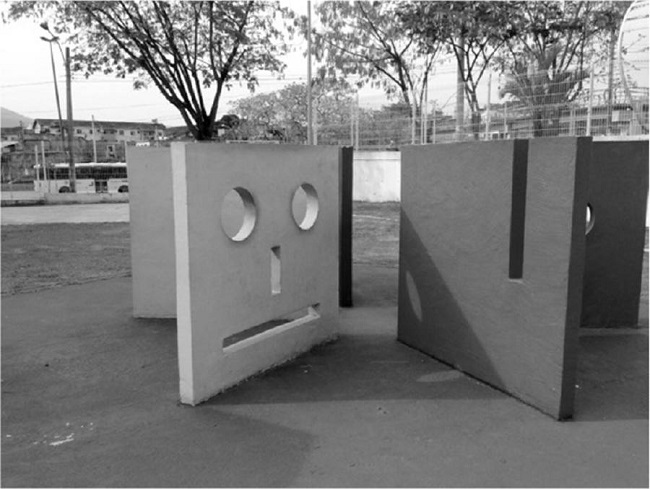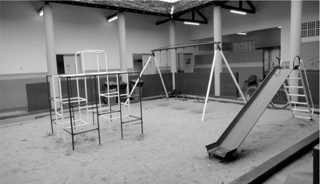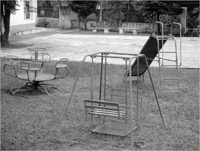 Os elementos mais característicos dos pátios são os brinquedos fixos, embora não estejam presentes em todos. As fotografias permitiram observar que há gerações de brinquedos que se sucedem: os de ferro, os de madeira e os de plástico. Em relação aos brinquedos de plástico, cabe problematizar sua recomendação nos manuais do Ministério da Educação (MEC) para aquisição de mobiliário do Proinfância3, assim como recomendação de grama sintética nos playgrounds. A chancela do MEC tem peso, mais ainda a exigência de que sejam esses os brinquedos das escolas do Proinfância. A metodologia adotada pelo Fundo Nacional de Desenvolvimento da Educação (FNDE), ao centralizar a compra de todos os materiais, mobiliário e equipamentos usados nas escolas do Proinfância, constituiu um cartel de fornecedores, que são os maiores beneficiados. Vale observar que a pesquisa não trabalhou com nenhuma escola construída com recursos do Proinfância, pois, ao compor o campo empírico, o programa ainda estava sendo implementado. Mas sugere-se a realização de estudos que tenham como objeto de estudo o Proinfância.