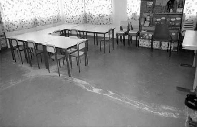Segundo os Parâmetros de infra-estrutura, a escolha de terreno para construção de uma escola deve estar condicionada à verificação das “condições de infraestrutura básica, como pavimentação da rua, rede de esgoto, energia, abastecimento de água e lixo”, além da presença de rede telefônica e transporte coletivo (BRASIL, 2006a, p. 23). Devem ser evitados terrenos inundáveis e oriundos de aterro sanitário. Porém, as autoridades parecem não tomar conhecimento de tais orientações. A escola 7, inaugurada em 2003, no Programa Nova Baixada, foi construída em terreno inundado, e, como consequência dessa instabilidade, surgiram rachaduras no chão, que também sofreu afundamento ao longo dos anos. No final de 2012, as rachaduras aumentaram a ponto de oferecer perigo às crianças e professoras e a escola foi fechada, só retomando suas atividades em junho de 2013, após obras de manutenção que, de acordo com a coordenadora da escola, não foram realizadas adequadamente.