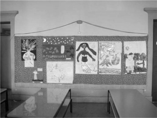 Há ainda outro tipo de vestígio das crianças, como as toalhas de banho e roupas infantis penduradas em duas escolas. Embora sejam objetos de uso das crianças, foram deixados pelos adultos.